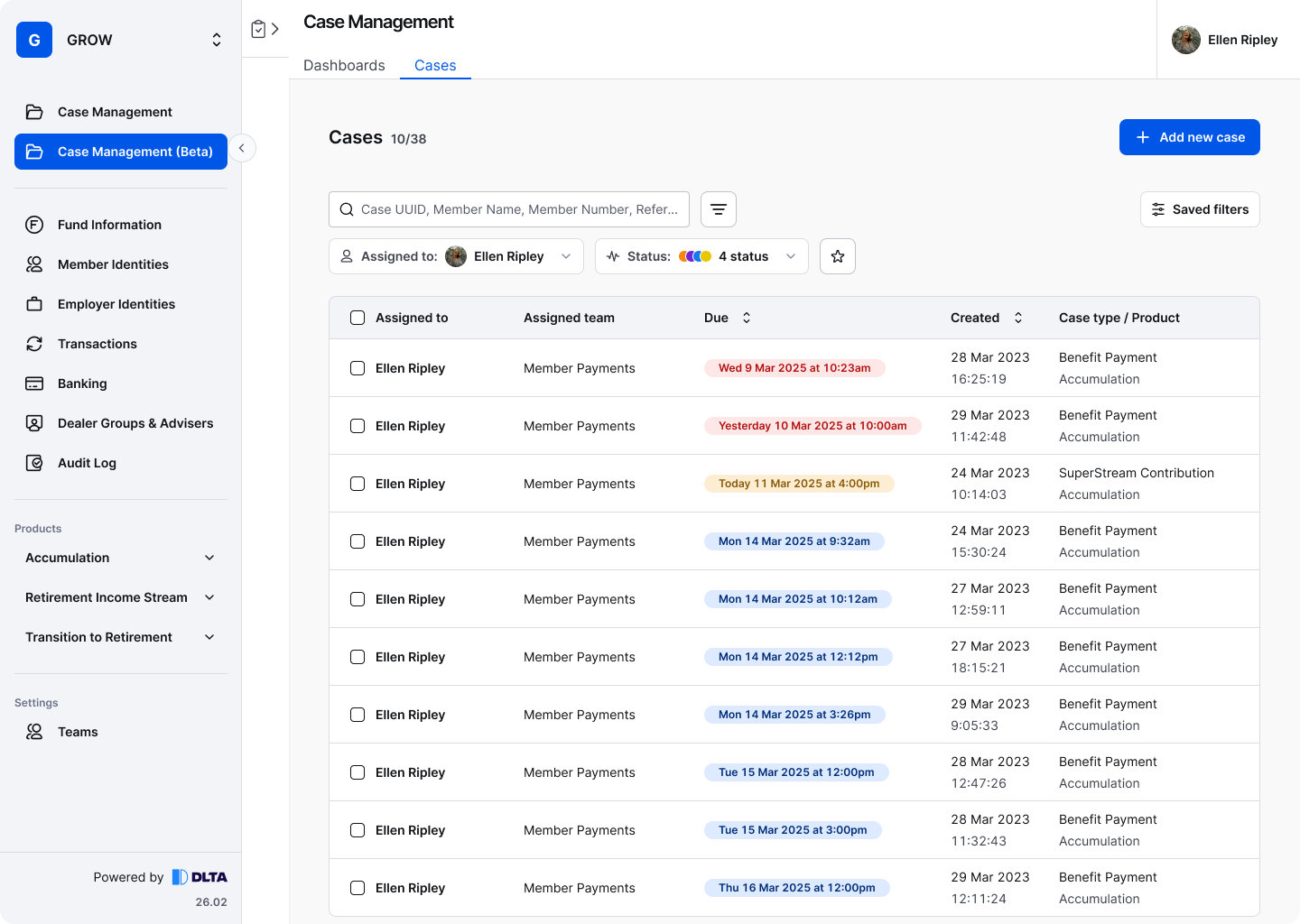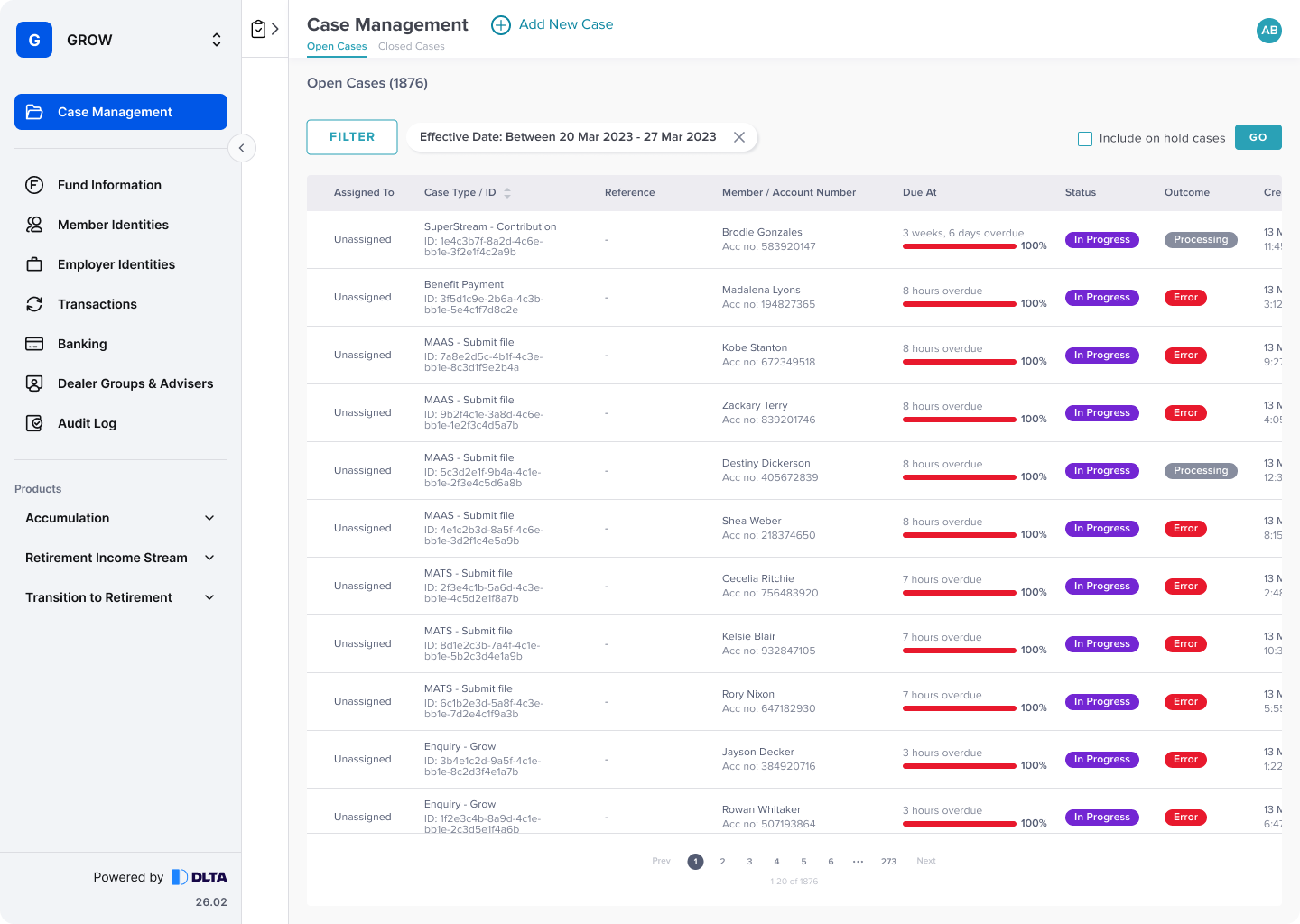 Case Management is the operational backbone of DLTA, enabling administrators to manage work efficiently by capturing every interaction across superannuation administration. As GROW scaled, the need to optimise workflow and workload management became essential to sustaining high service quality, meeting SLAs and administrator effectiveness.